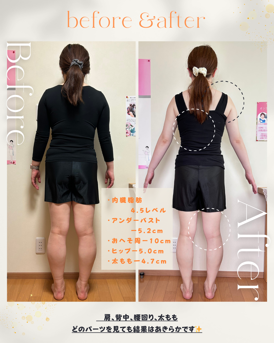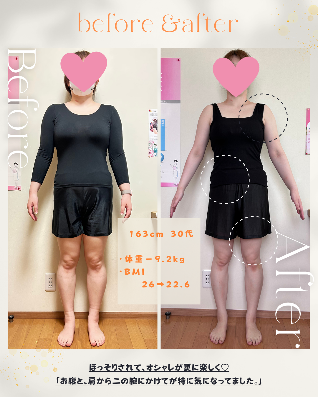 気になっていたのは、お腹まわりと肩から二の腕。